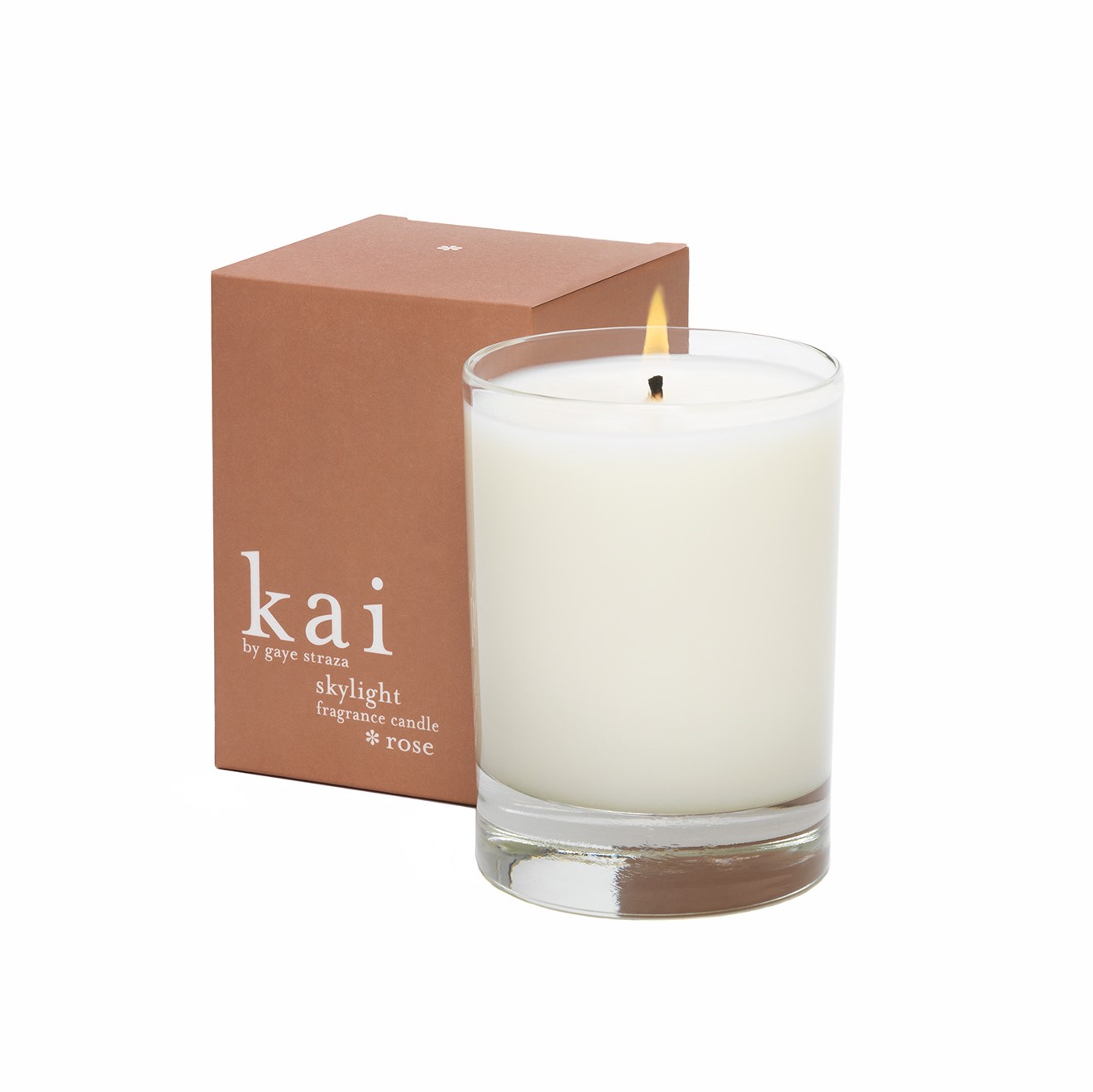 just in time for the holidays and making for the perfect hostess, boss, teacher, mom, friend, sister gift and, depending on your office limit, a great secret santa or really nice stocking stuffer! whew! you get it. it's that kind of no-brainer present for women and men due to its subtle green notes. introducing the kai*rose skylight candle! with a burn time of 40 hours in a proprietary blend of soy and coconut wax, and scented with kai's intoxicating blend of gardenia top note wrapped in white exotics layered with rose absolute. 100% cotton wick and paper core. and i'd be amiss not to mention the candle jar itself is perfect to reuse as glasses, vases, vessels for bathroom items...