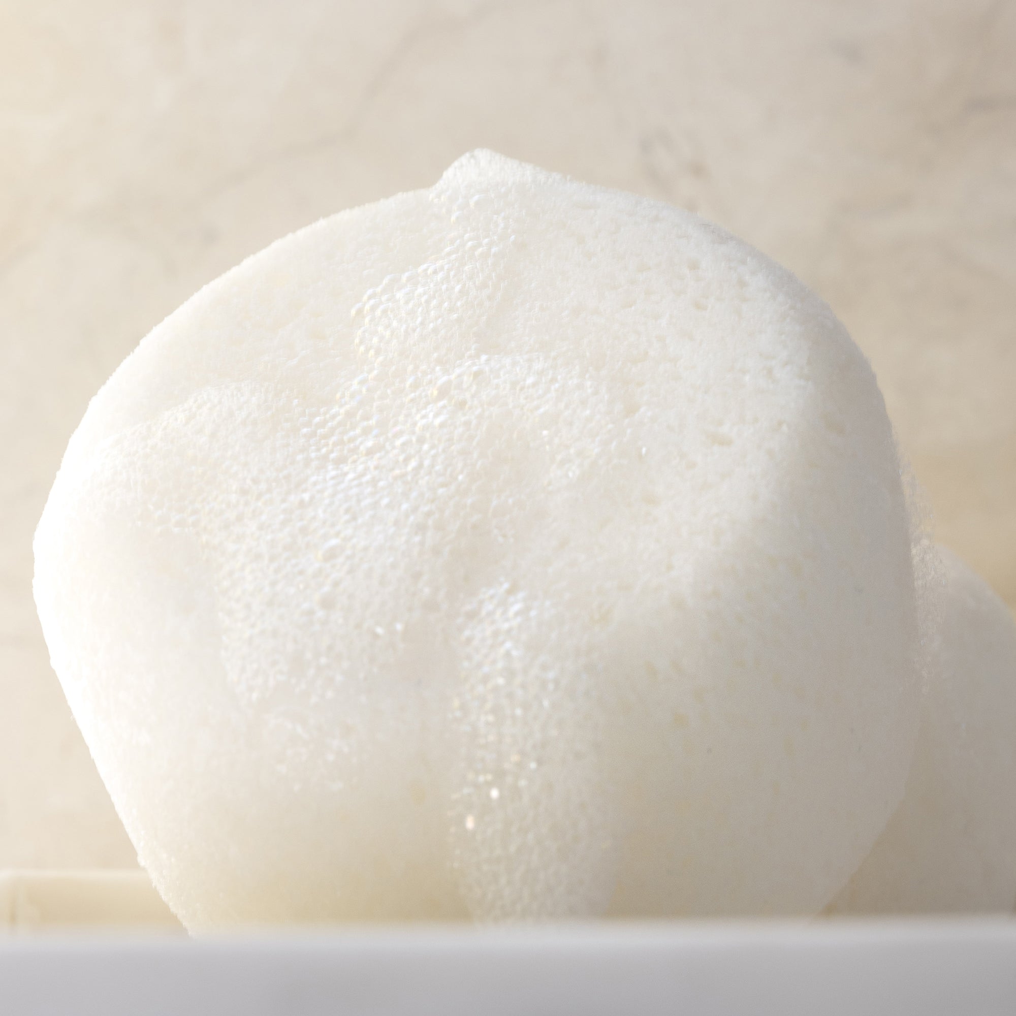 in your shower or bath, run the sponge under warm water and gently rub onto skin in circular motions to cleanse, exfoliate, and moisturize your skin.