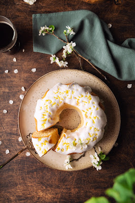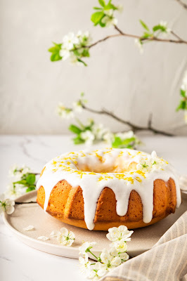 - make the glaze: in a small bowl, whisk together the confectioners’ sugar, lemon zest, lemon juice, and 1 tablespoon water. after the cake has cooled entirely, spoon the glaze over the top of the cake, letting it run down the sides.